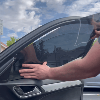 With your window up, slide your pre-cut tint into place.
